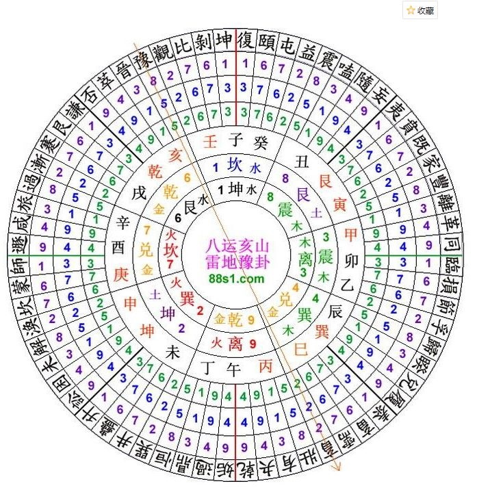 卦气五行从子山之中,向左向右皆九、四、三、八、二、七、六、一。